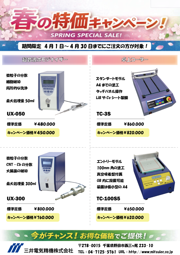 2026年4月30日までの期間、卓上コーターのデモ機の無料貸し出しを実施します。